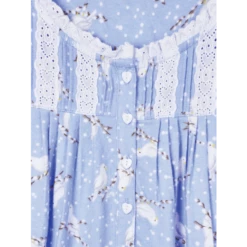 This comfy robe is made of whisper-soft cotton lawn and designed with a full sweep and generous A-line silhouette to give it an easy fit when paired with the matching nightgown. The fit is ultra-comfortable but it’s the feminine details that set this robe apart. You’ll love the real shell buttons, latticework floral lace, pintucking, ruffle and lace hemline, and lace trim woven with satin ribbon—it’s what makes this robe a delight to wear.
