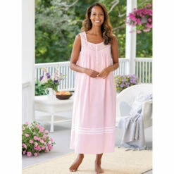When you slip into this generously cut nightgown, not only will you be the fairest of them all, but you’ll also be the most comfortable. Like frost etchings on the windowpane, it’s delicately finished with lace and embroidery at the bodice, neckline, and cuffs. The open neckline with a button front ensures a relaxed, easy fit, and the row of pintucks above the hemline adds a touch of old-world finery.