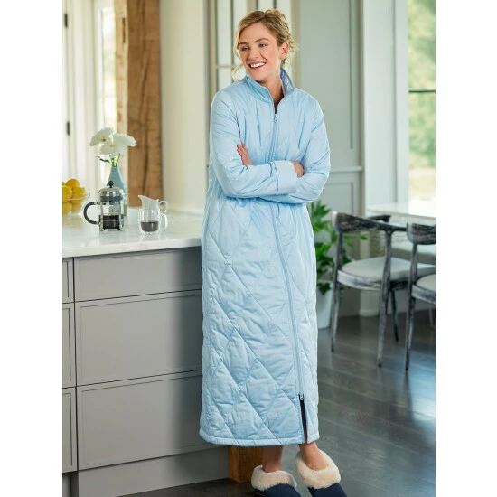 - Pajama top with button front placket and abalone buttons is approx. 27″ long