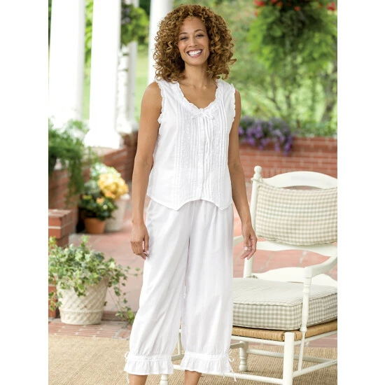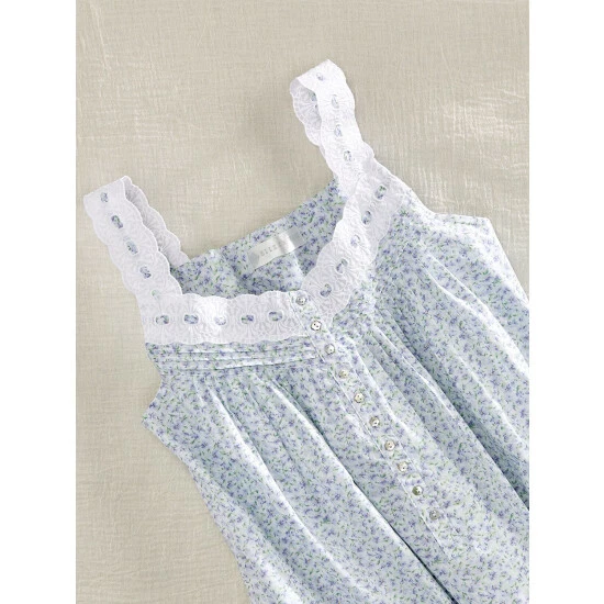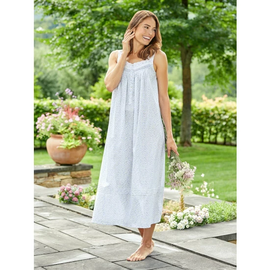 This full-length nightgown is skillfully tailored from crisp, cool cotton lawn, one of the finest weaves of cotton. It’s thoughtfully detailed and features beautiful eyelet cotton lace trim, pintucking, and real shell buttons. It also has soft gathers at the bodice to create a flattering style with an easy fit.