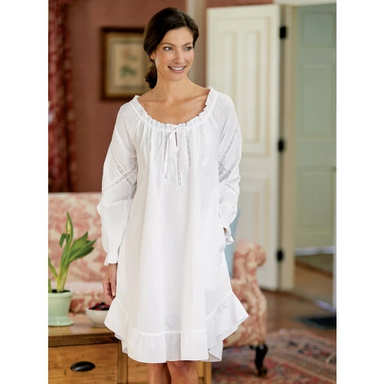 There’s something romantic about clothing worn during the Renaissance…those soft, billowy sleeves; loose, comfortable necklines, and pretty details. Our Poet’s Nightshirt takes its inspiration from the Renaissance with its gathered neckline with tie, lace insets, relaxed sleeves with embroidery and pearlized bead detailing, and shirttail hem with ruffle.