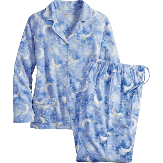 When we saw this serene moon and stars print and felt the superior heft and softness of the flannel, we were over the moon! We knew the combination of brushed flannel and the sleepy time print would ensure a good night’s rest and the sweetest of dreams. The fact that the pajamas feature the details we love in Lanz sleepwear make these pajamas a dream come true.