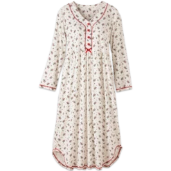 Vermont Country Store Double-Quilted Flannel Bed Jacket Blue Floral