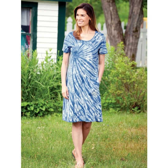 This is one wave you’ll want to ride all the way back to the ’60s when tie-dye dresses like this one were “happening”—and still are. It’s made of soft jersey knit in a universally flattering A-line style with a soft scoop neckline. Wear it on its own, paired with leggings, or as a groovy swimsuit cover-up.