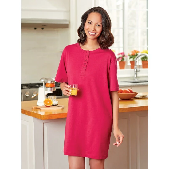 - Coordinating Cotton Knit Long Henley Nightshirt (#68457) and Floral Print Henley Nightshirt (#86105), sold separately