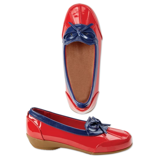 Behind every cloud, there is a silver lining, and on rainy days nothing shines brighter than these water-resistant puddle jumpers. They’re made of polyurethane and have a mirror-like patent finish on the outside—for added style and panache. On the inside, they’re lined with a soft jersey knit and have a removable cushioned insole.